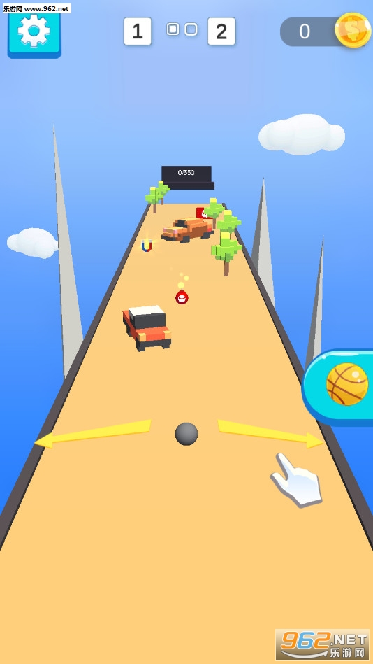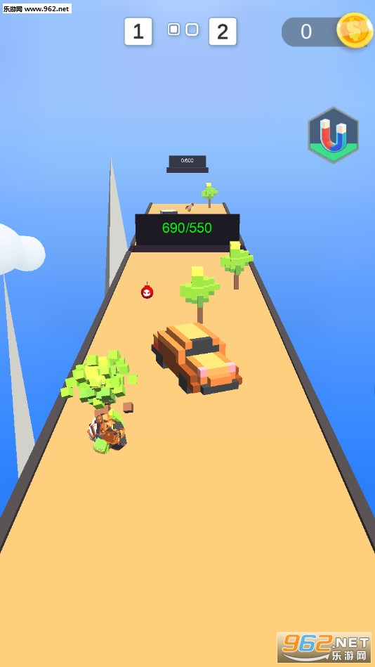 趣味的收集闯关游戏,玩家可以收集道路中出现的一些物品,躲避出现的带有带有炸弹图标的障碍物和一些尖刺,每个关卡都有着收集方块数量要求,超过才能过关。