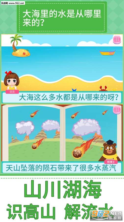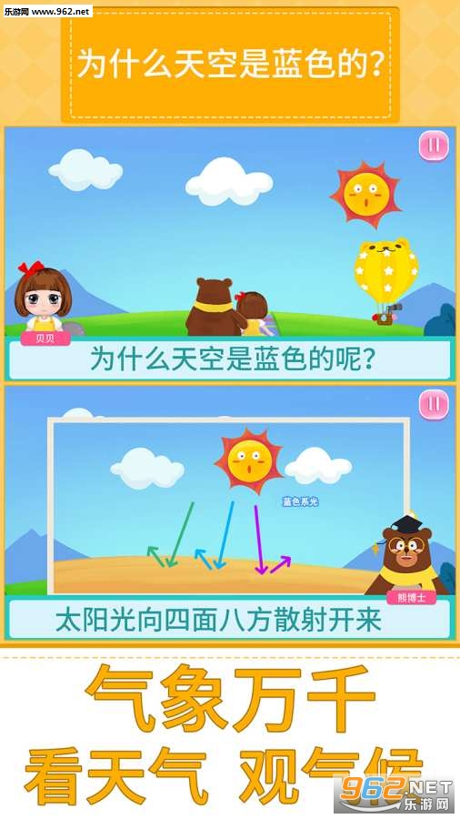 游戏旨在开发孩子们的思考,助力他们想象力的丰富,以十万个为什么的模式让孩子去了解这个广阔的世界;