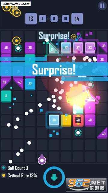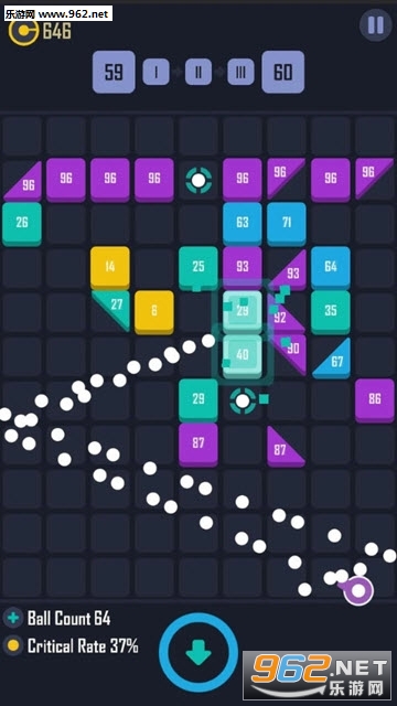 1、炮弹的数量可以增加,优先击破独特的方块可以给你增加更多的小球;