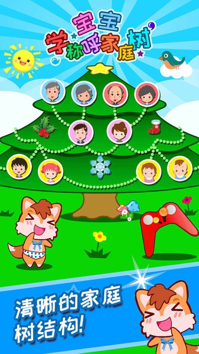 专门为儿童打造的学习软件,宝宝学称呼家庭树app提供清晰的家庭树,还有众多有趣的游戏互动,可以通过游戏掌握家庭成成员的称呼,学习更轻松高效可以直观的看到家庭的构成,每位成员的称呼宝宝可以轻松的学习记忆.
