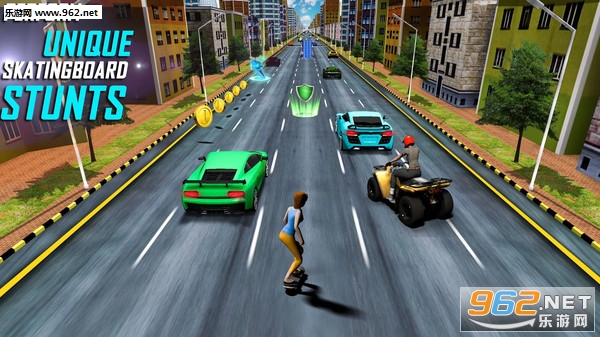 融入了现实3D感的驾驶体验,酷炫拉风的各种赛车都可以驾驶,而且还可以用滑板和摩托车去飙车,随你喜欢自由选择;