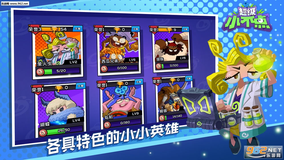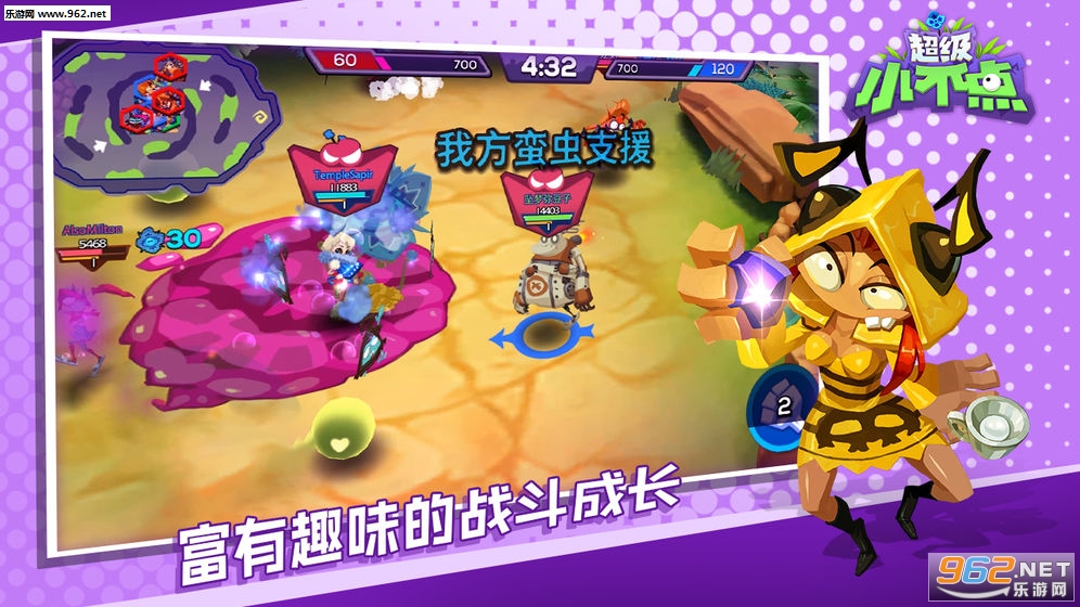 美式卡通设计小不点,皮肤、动作多样化;招牌技能各不同,小不点也能成为大英雄。