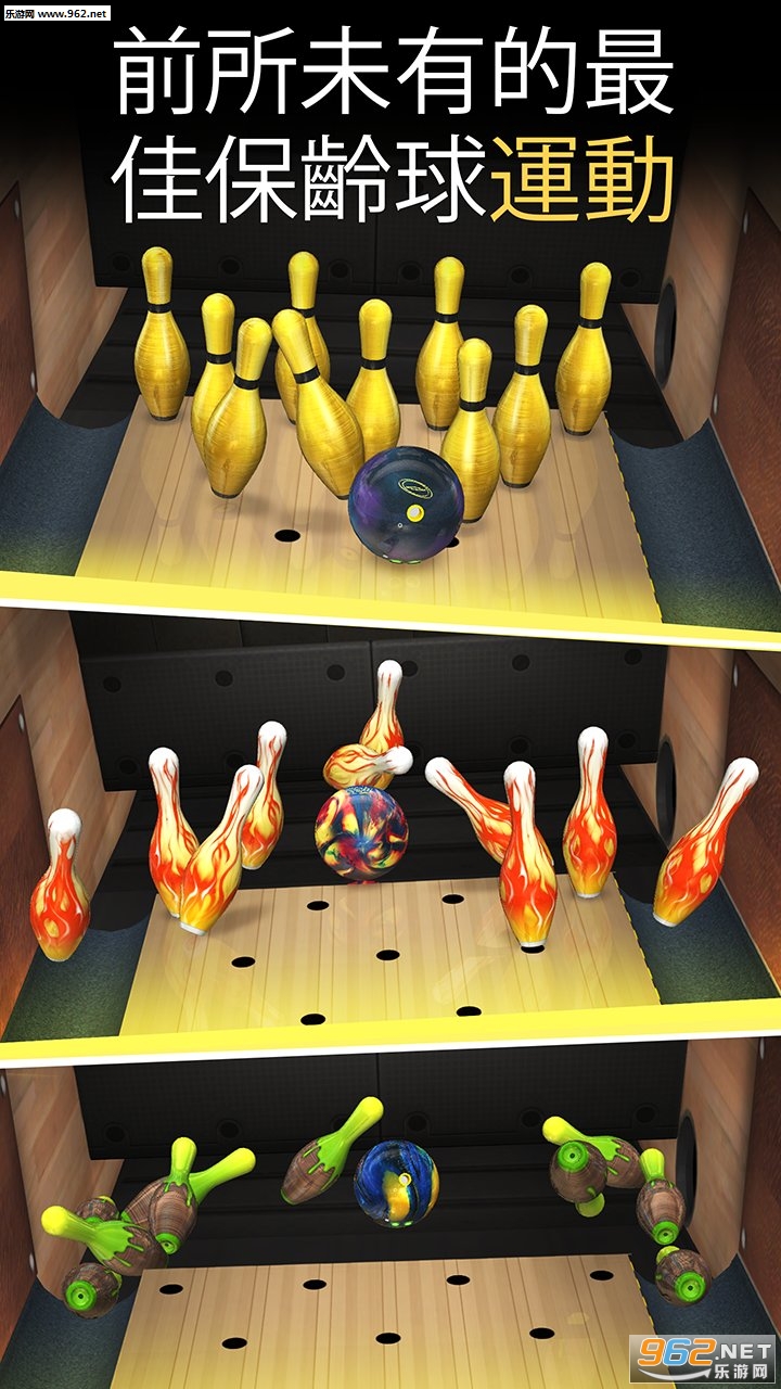 “现在挑战自己和世界。下载最逼真,最精美的保龄球游戏。