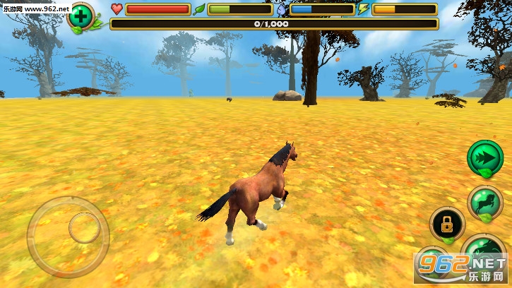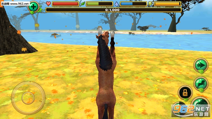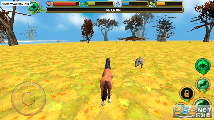 趣味的骏马模拟游戏,玩家的任务就是控制骏马在野外生存,这里其他的生物都是敌人,注意不要让血量归零了,可以去河边喝水和吃草来保持自己的饥渴值,注意保持体力是很重要的。