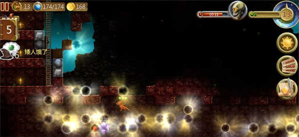 2、或者指挥矮人朝地底深处挖掘,挖到最深处就会发现岩浆层,将岩浆层的与地底的通道打开,释放居住在这里的红龙。