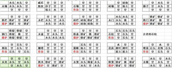1、桥类、熔炉、作坊等物品合成表一览