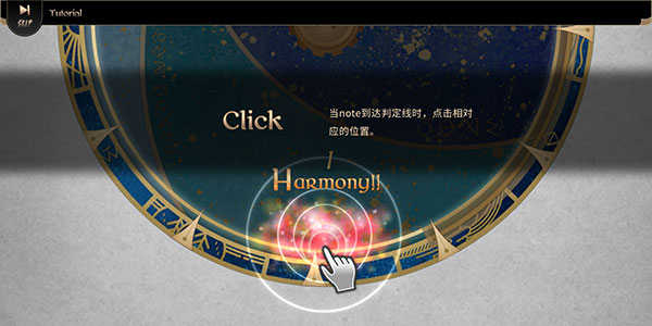 当音块到达判定线时,点击相对应的位置即可。