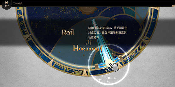音块到达判定线前,将手指置于对应位置,按住并跟随轨道直到轨道结束。