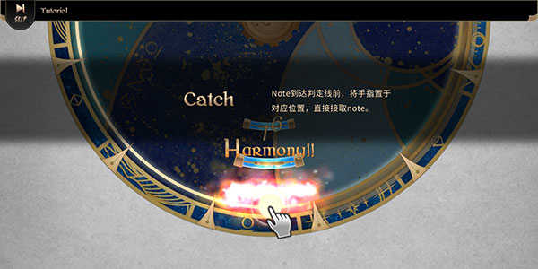 音块到达判定线前,将手指置于对应位置,直接接取音块。