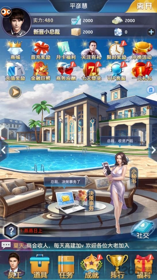 --有钱人当然不用自己干活了,雇佣秘书帮助你打理公司,你只需要偶尔上线领取收益即可。