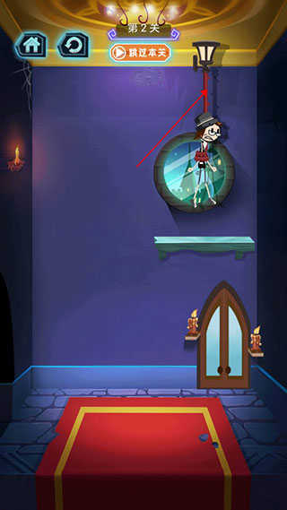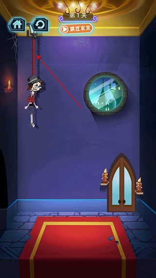 2、这一关卡非常地简单,我们只需要割断火柴人头上的绳子就能通关。