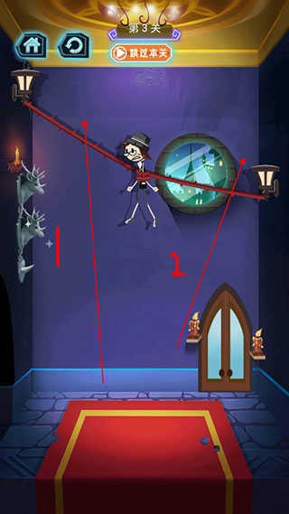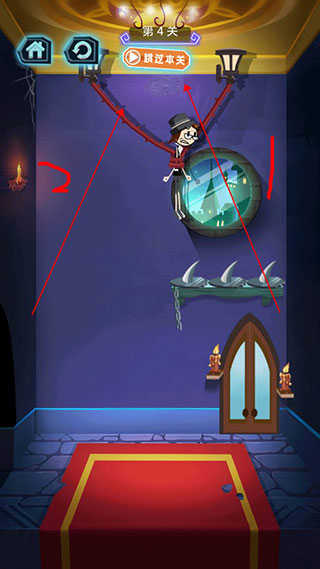 3、第三关我们就可以慎重一点了,先割断左边的绳子,再割断右边的绳子就可以了。