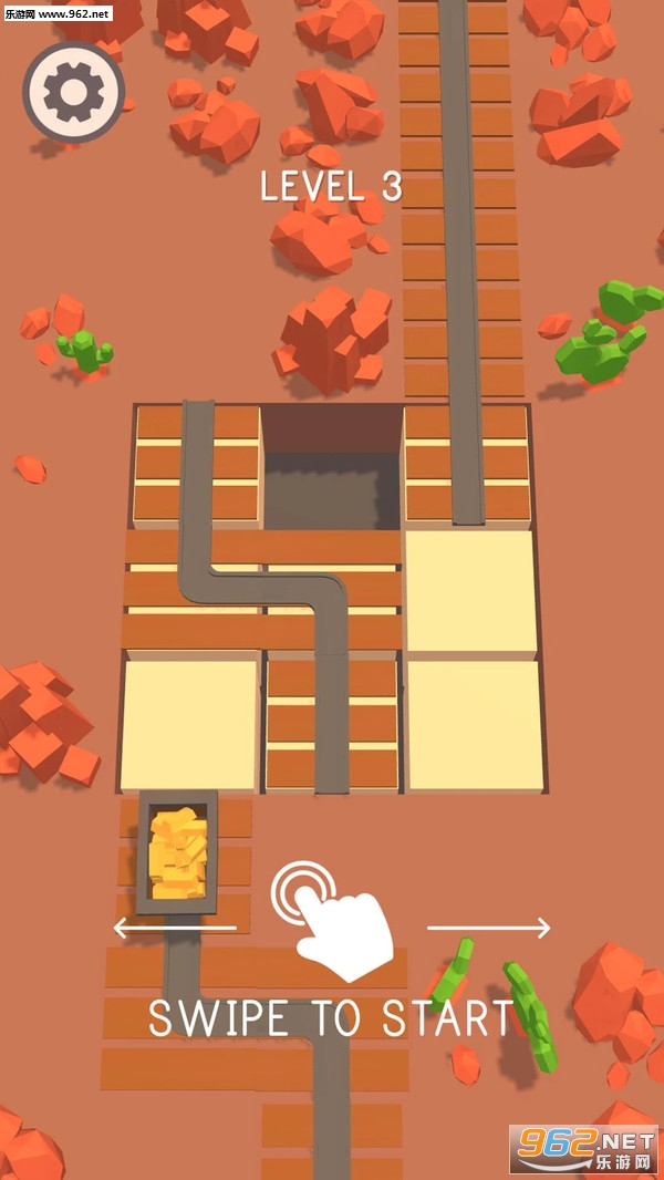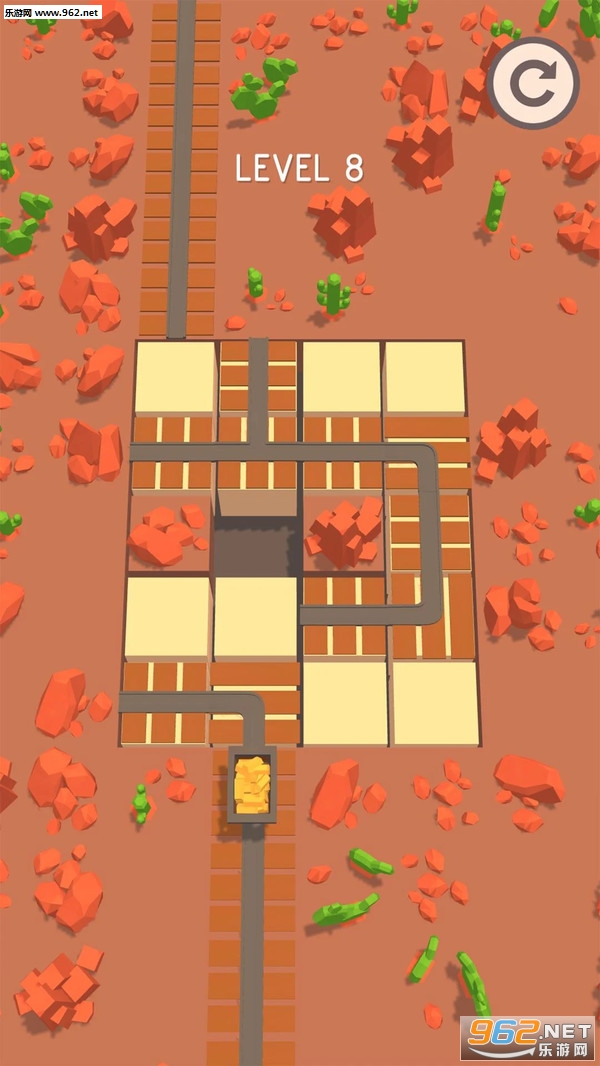 游戏中移动铁轨方块,让所有铁轨顺着轨道连成一片;