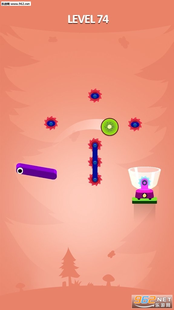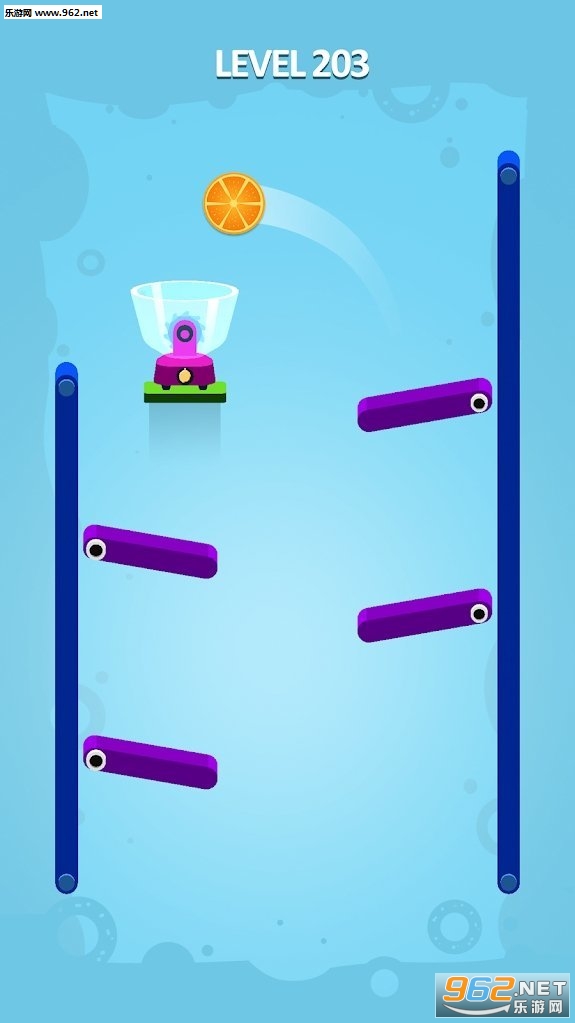 2、在游戏中玩家需要让水果成功的落到榨汁机中,界面中有很多的障碍物,你要想办法把它当做帮助你的道具。