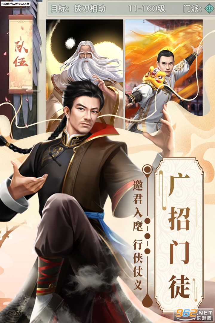 3、在江湖上如果觉得一个人的闯荡和冒险会寂寞,那就抓紧行动起来广招门徒,让你的阵容变得丰富起来,各路江湖侠士的加入能让你更加强大~