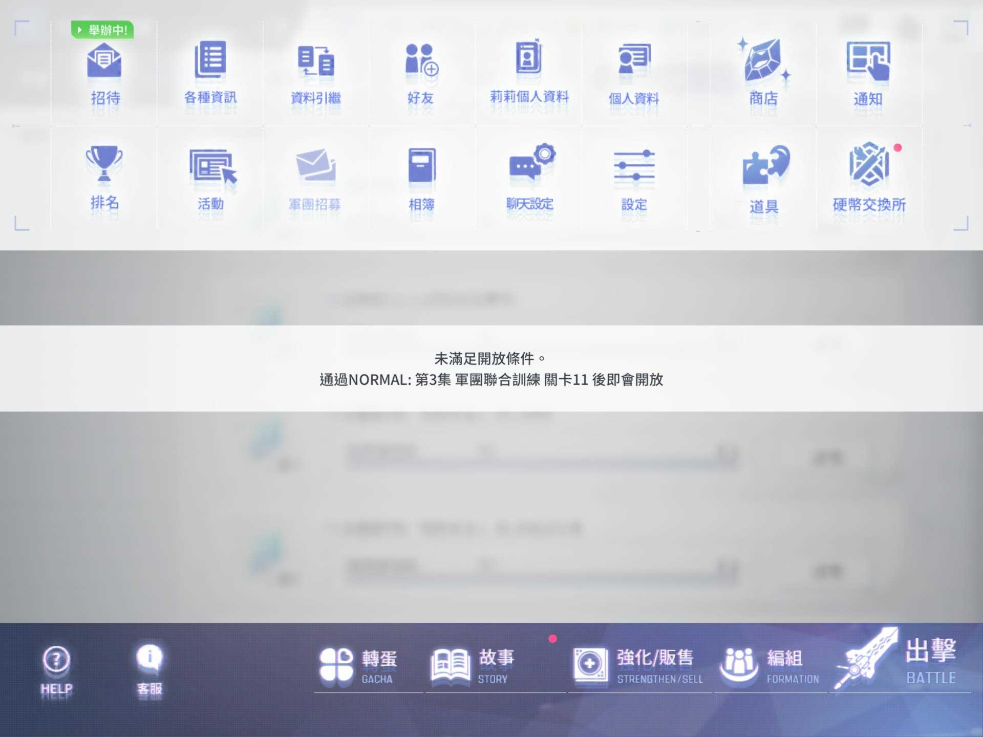 加入最多9人组成的军团”,体验Neunwelt战术”下的多人协作战斗。军团不仅是社交中心,更是早期获取稀有资源的重要渠道。完成军团任务还可获得一张可满突的5星回忆卡,助力开荒进程。尽早解锁军团功能(主线普通3-11),是新手阶段的核心目标之一。