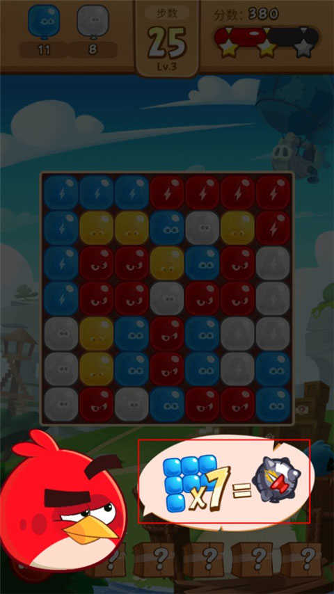 以最少的步数,完成释放规定任务内愤怒的小鸟,剩余的步数可以换取更多游戏分数,还能释放更多新鲜小鸟。
