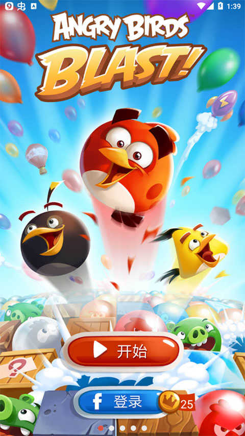 1、打开愤怒的小鸟爆破游戏,两个及以上相同颜色的气球即可进行消除。