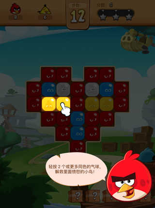 轻按2个或更多同色之间的气球,就能解放出里面愤怒小鸟了,