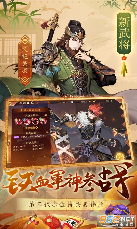 《少年三国志2》两周年特别打造全新伙伴红颜,心动体验交互养成玩法,红颜上阵更能实力加倍!第三代赤金将义绝关羽、恶来典韦、不屈周泰、曜武华雄震撼登场,勇猛来袭!上线参与周年庆典活动即可免费领取赤金红颜张春华并可任选初代赤金将。