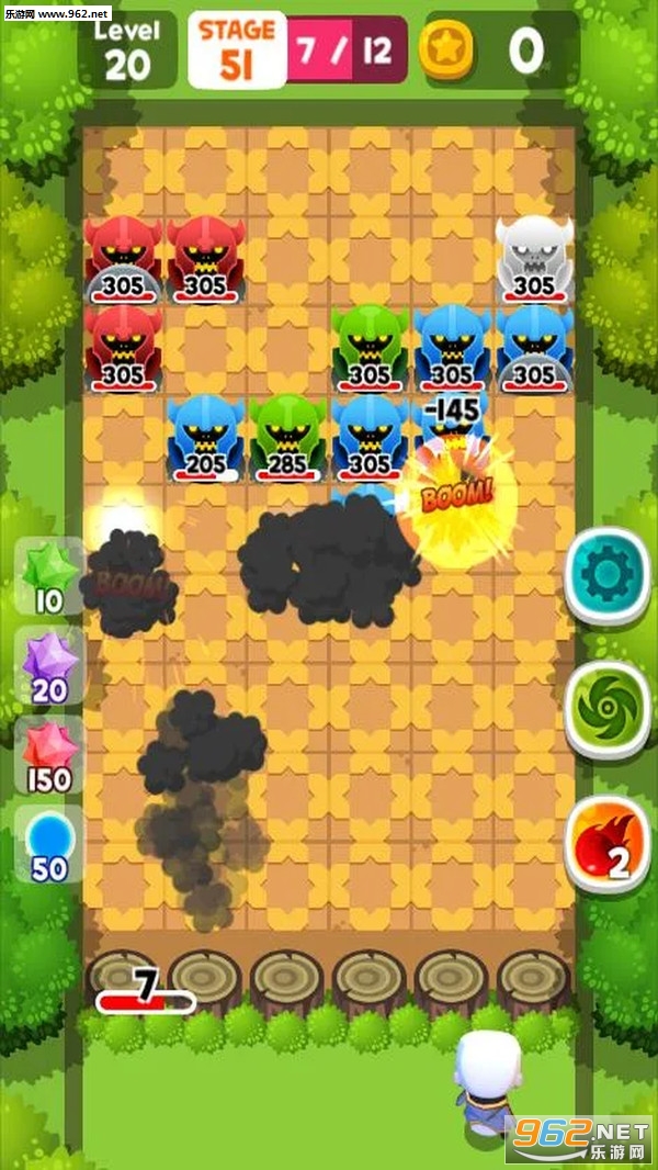 3.每排道路都能设置陷阱,用完一次后需要重新花钱来补充。