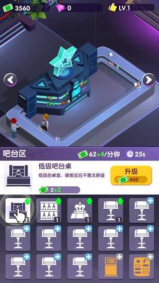 具体的操作,直接点击吧台,在吧台区进行购买升级。