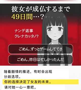游戏以日本传统七七四十九日”丧葬文化为背景,构建出一个既温情又略带阴郁的世界。男主真在失去挚爱小夜后,陷入深深的自责与思念之中。而小夜的灵魂并未立即离去,而是以旁观者身份默默注视着真的一举一动。在这49天里,四位性格迥异的女生陆续出现在真身边,试图填补他内心的空缺。然而,每一次暧昧或动摇,都可能让小夜心生怨念,无法安息。游戏通过细腻的文字与心理描写,探讨忠诚、执念与放手之间的微妙平衡。
