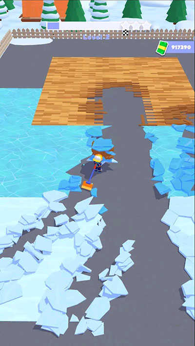 接受来自不同场景的委托,灵活选用工具应对积雪、碎木、冰块等各类杂物,策略性规划清洁路径以最大化收益。