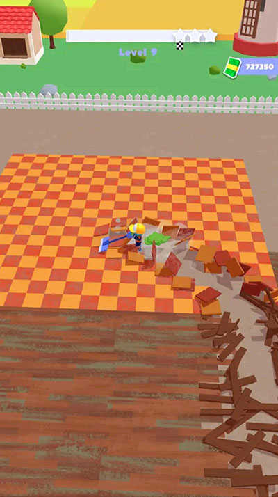 游戏巧妙结合地面清洁”与房间装饰”两大核心玩法。在清洁环节,你将操控身着工装、头戴安全帽的角色,手持工业吸尘器,在不同材质的地面上完成碎片清理任务;清理完成后,还可自由布置焕然一新的空间——从简约实用到奢华精致,风格由你定义,带来视觉与心理的双重满足。