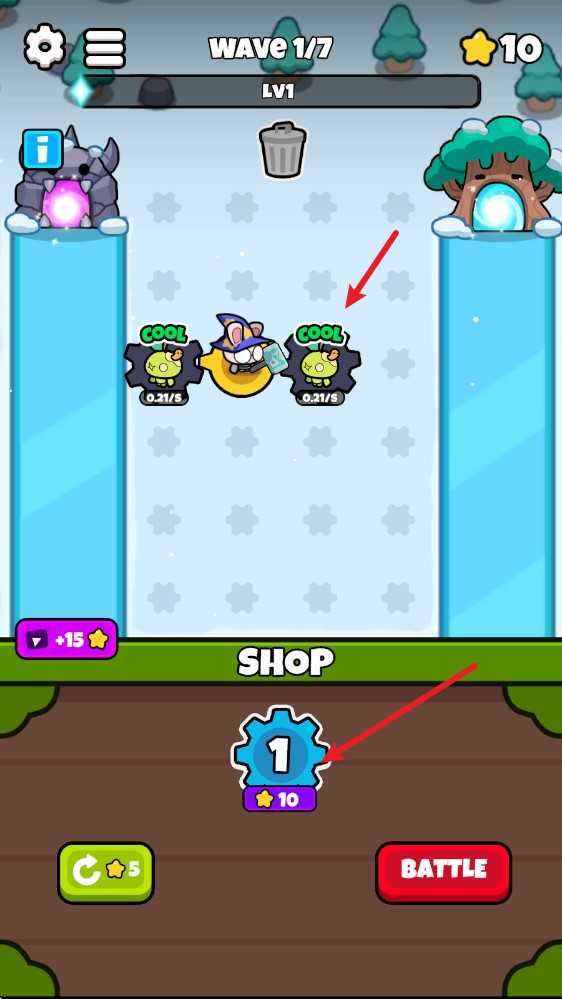 进入战斗后,你的角色将自动驻守战场。通过点击下方齿轮栏,选择合适的齿轮拖入场景中,即可启动防御体系。齿轮一旦放置,便会自动旋转并与其他相邻齿轮联动,触发召唤、强化或加速等功能。