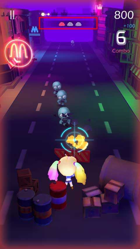 角色的生命以大脑”数量表示,初始为多个,但一旦被僵尸偷袭成功,大脑会逐个减少。当仅剩一个大脑时,若再被攻击,游戏即告失败。因此,不仅要快速消灭普通僵尸,还需特别留意特殊敌人——例如头戴皇冠的精英僵尸。成功收集三个皇冠即可提前通关,为高分冲刺提供捷径。