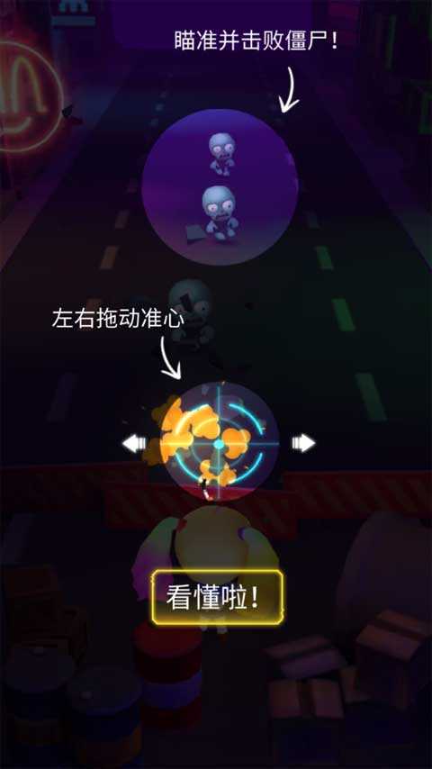 在《节奏僵尸中文版》中,你的每一次开火都必须踩准音乐节拍。通过左右拖动准心瞄准来袭僵尸,精准射击不仅能高效清敌,还能触发连击奖励。每种武器拥有独特的音效与节奏反馈,让战斗不再是单调的点击,而是一场随音乐律动的指尖表演。随着关卡推进,僵尸种类和攻击节奏不断变化,考验你的反应力与节奏感。