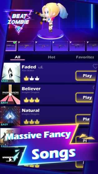 游戏内置超过100首精心编排的音乐曲目,涵盖电子、摇滚、流行等多种风格。玩家可自由选择歌曲开启关卡,还可将喜爱的曲目加入收藏夹,随时重温高能节奏。不同歌曲对应不同僵尸波次与节奏难度,确保每次挑战都充满新鲜感。