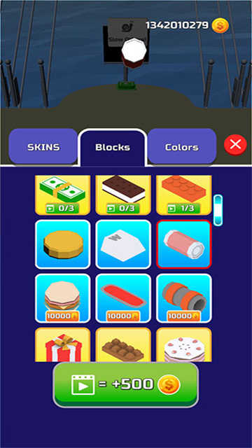 在自定义界面中,上方三栏分别对应角色模型、砖块样式和角色皮肤颜色。你可以根据喜好自由搭配。部分外观可通过金币直接购买,部分则需观看广告或进行付费解锁。