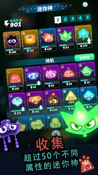 迷你神:发现50多种不同属性的迷你神,组成一个史诗般的团队。