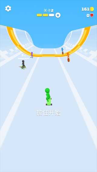 游戏采用极简操作设计,只需一根手指即可掌控全场。进入游戏后,按住屏幕即可启动滑板,通过左右滑动精准控制方向,引导角色穿越复杂赛道,直奔终点。