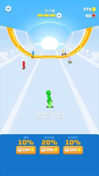 通过不断积累金币,你还能升级角色属性,如提升初始速度、增加金币获取效率或强化起步爆发力,打造专属竞速王者。