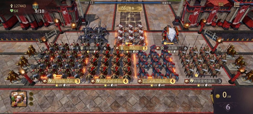 特色:指挥训练有素的方阵步兵维持战线,并用重装冲击骑兵粉碎敌人;能够依靠消费金币来加强军团;独特的增援机制,使军团在后期愈发强大