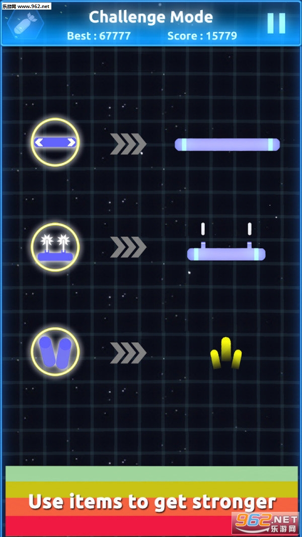 《打破宇宙壁垒安卓版》是一款有趣的弹射游戏,游戏有两种模式,你要移动底部的滑板,让滑板接住小球,让小球弹射,击中上方的图形,以消灭它们,你要尽可能多的击中图形,不然图形会越来越低,也要接住更多的小球,不然小球的数量会变得很少。