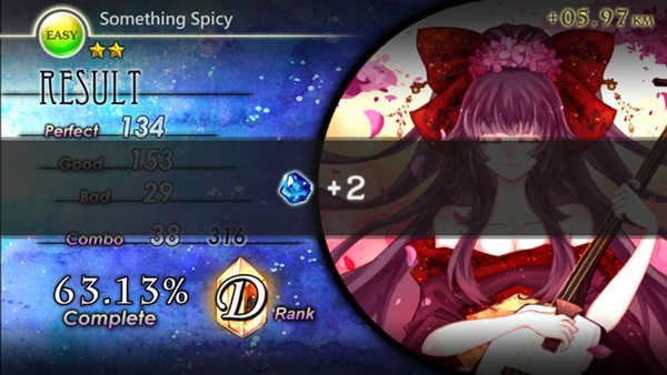 另外每一首歌玩完以后都会有个总评分,如图,我获得了E评分,当然E评分是非常低的。