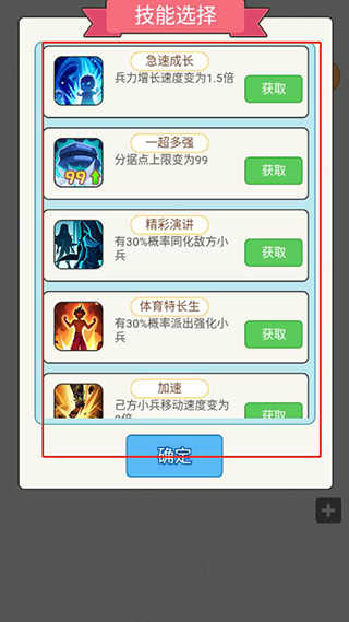 2、每局游戏开始之前都可以选择技能,不同的技能作用效果都将不同,选择一个技能后点击确定。