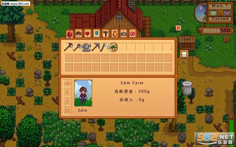 2、开始的时候我们只有500金币,首先开垦一点土地种植最便宜的防风草吧。