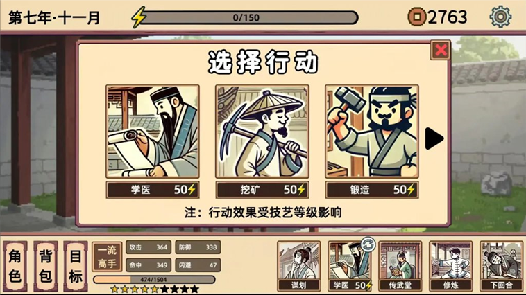 确认配置后,通过行动面板开启你的江湖之旅,踏上一段充满未知与机遇的武侠征程。