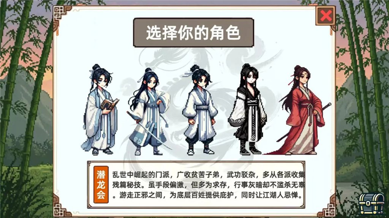 上百种武学招式与计略自由组合,支持暴击流、防御流、控制流等多种战术风格,每一次搭配都可能带来截然不同的战斗体验。同时,多个初始角色各具专属属性与技能,玩家可根据自身偏好精准选择,打造个性化侠客之路。