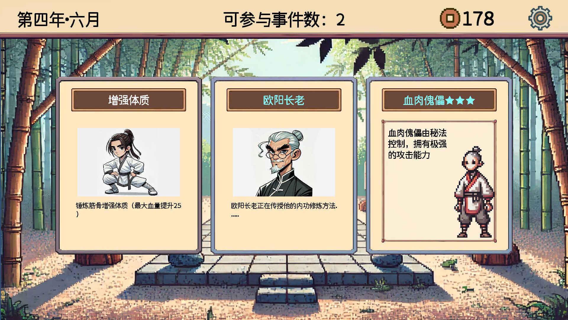 游戏中包含上百个随机事件,每个选择都可能带来丰厚奖励或致命风险。面对高风险高回报选项(如用大量资源换取稀有武学),需结合当前角色强度、资源储备及流派契合度综合判断,切忌贪心冒进。