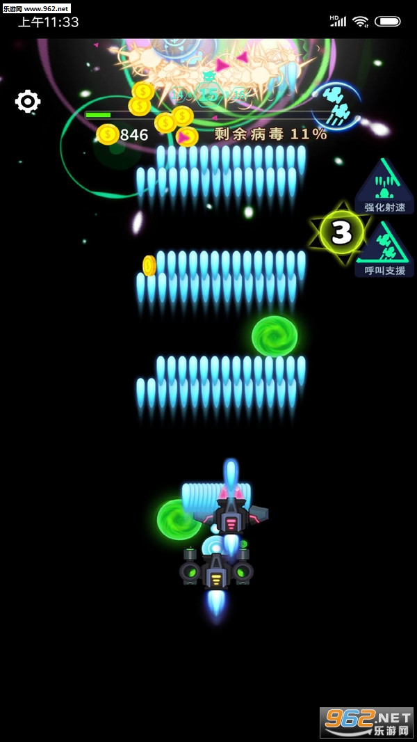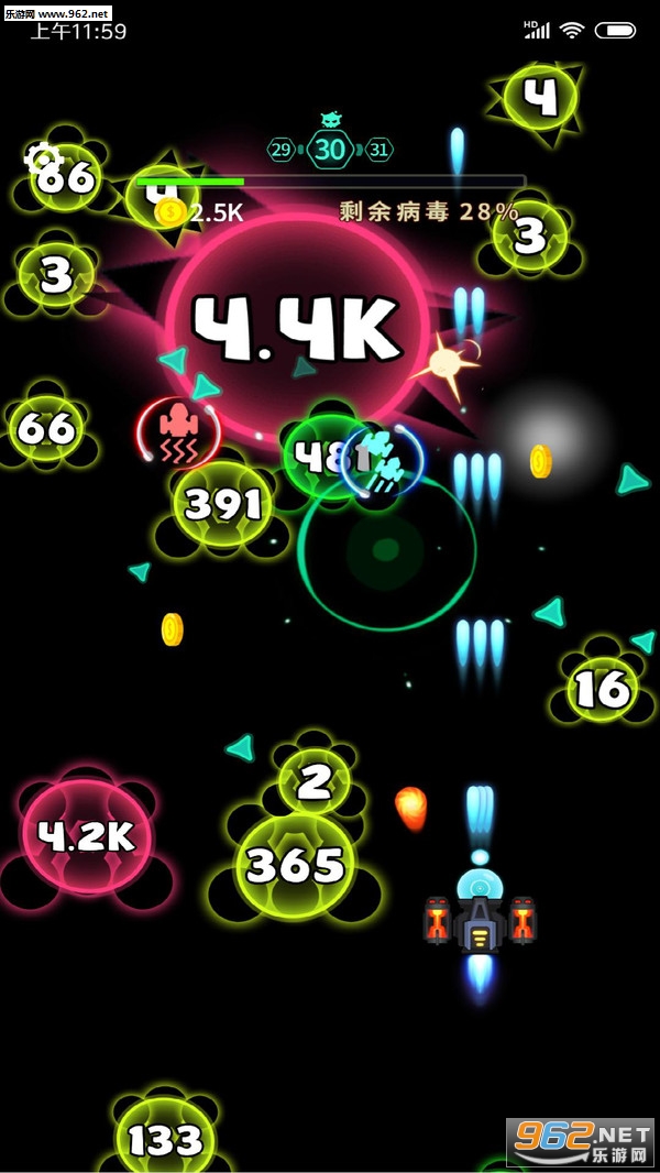 简单的控制模式,轻松有趣的玩法,多样化的关卡设计,慢慢提升你的作战能力,加强火力消灭更强大的病毒对手。