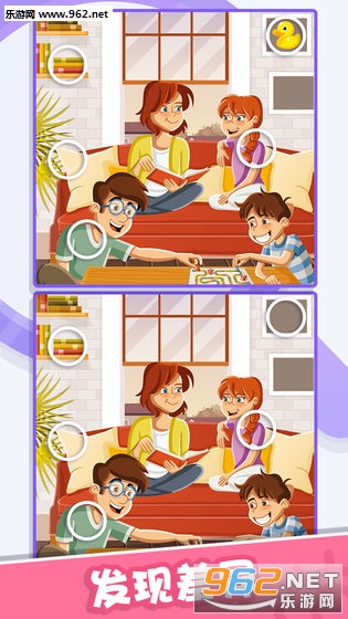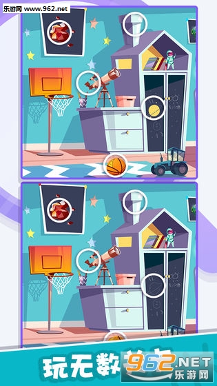 这是一款经典的找茬游戏,卡通可爱的图中,看似一样但又有多处不同,发挥你的侦探细胞找到不同,通过一个个难关。