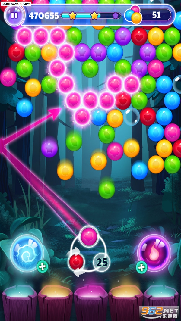2、简单的操作方式,控制炮炮弹发射器的方向,与相同的泡泡撞击;