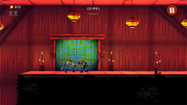 游戏采用鲜明的红黑黄主色调,配合动态溅血特效与极具张力的斩杀动作,营造出紧张刺激的忍者对决氛围。背景音乐恢弘史诗,配合精准的音效反馈——无论是刀刃破空、陷阱触发还是敌人倒地,都让每一次操作充满打击感与代入感。