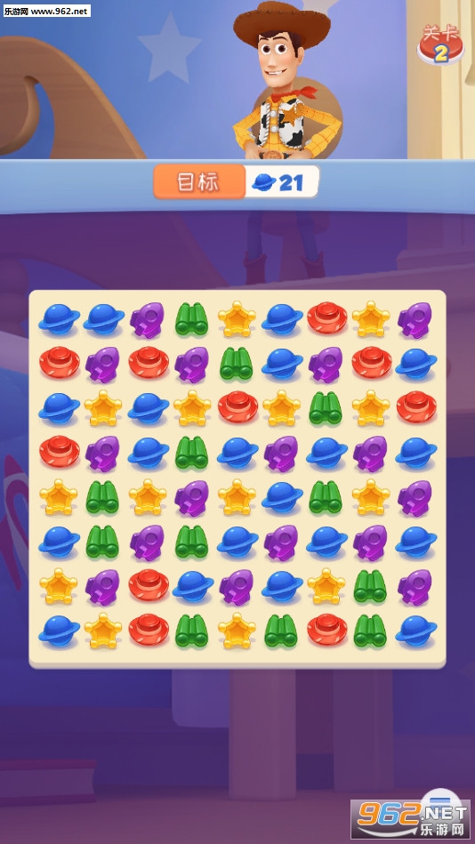 召唤玩具道具来帮助你过关,用“抓手”来交换游戏单品,用“外星人飞碟”吸走需要清除的单品,用“神奇画板”随机打乱整个游戏版面获得更佳组合